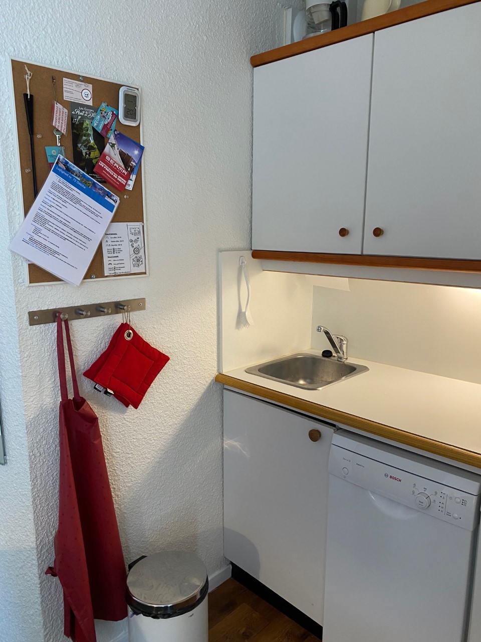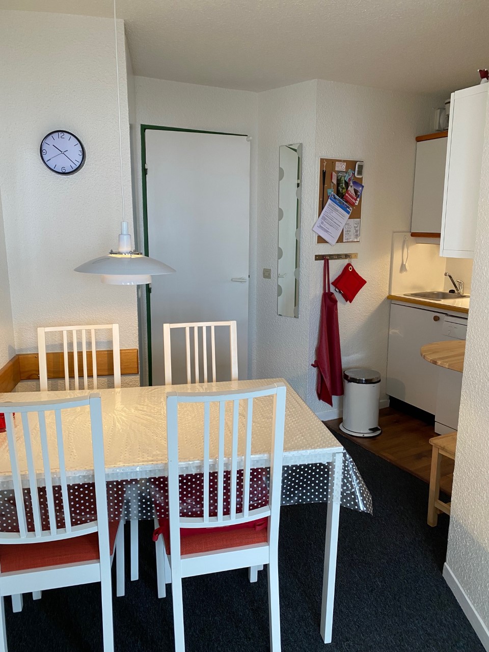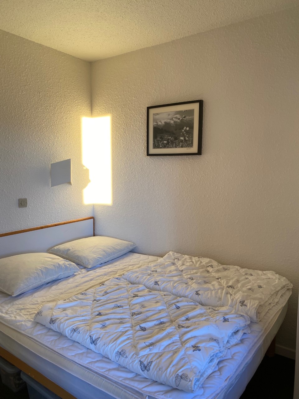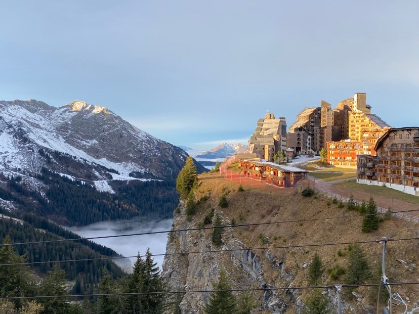 Fra den sydvestvendte altan har man en flot panoramaudsigt over bjergene og Morzinedalen samt byens Le Corbusier inspirerede arkitektur. På 2. etage, ligger vores skirum, skab nr. 72, hvorfra der er direkte adgang til pisterne.